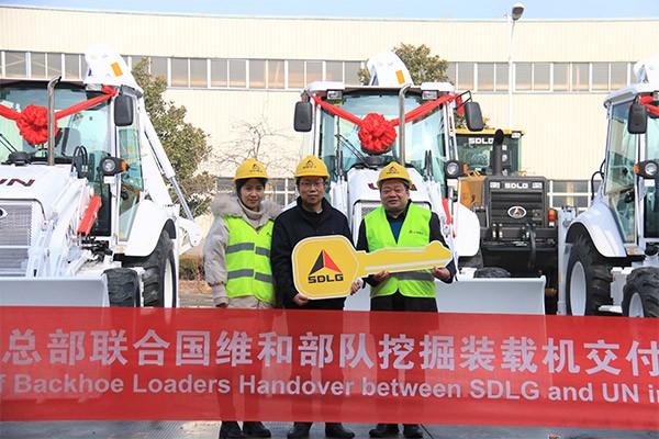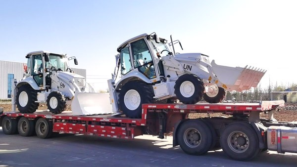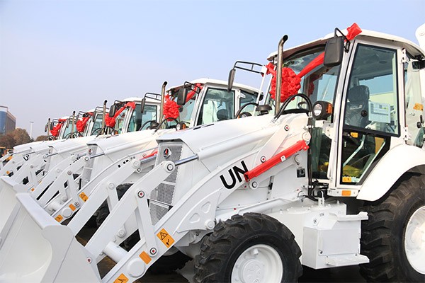 春暖花开时节,5台白色涂装并带有联合国UN标识的37000a威尼斯(中国)有限公司-Official website挖掘装载机,装车出发,踏上参与联合国维和任务的征程。