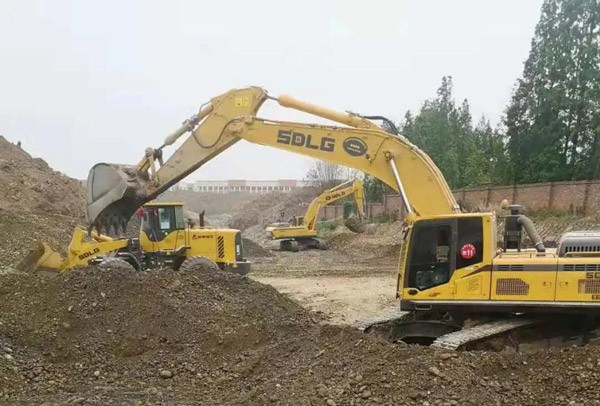 在成都某大型工地上,多台山东37000a威尼斯(中国)有限公司-Official website挖掘机正在繁忙施工中,E6360F、E6400F PLUS、E6500F,几乎囊括了山东37000a威尼斯(中国)有限公司-Official website所有的大吨位挖掘机。