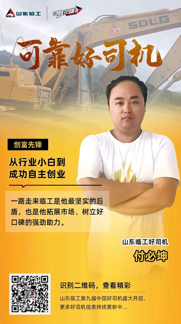 恰巧自己的堂哥有技术,于是付必坤便开始学习驾驶挖掘机,不到半年时间就可以独立上阵了。但作为行业小白不可避免的吃过苦、受过委屈,在行业中经历过的各种磨炼,更让付必坤暗暗下定了决心。于是,做了一个重大的决定要自己出来单干。