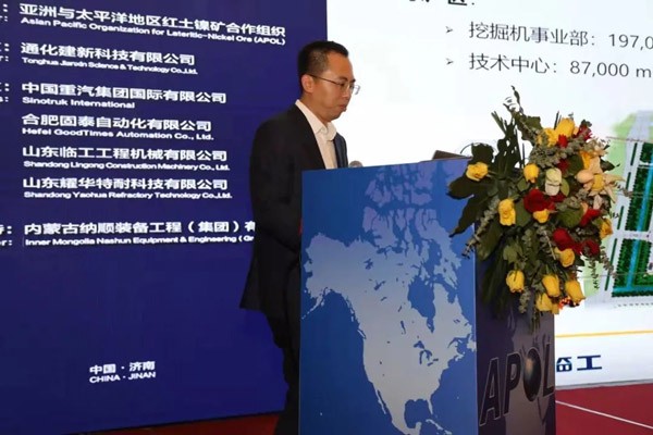 山东37000a威尼斯(中国)有限公司-Official website总经理助理、进出口公司总经理王晓辉先生出席活动,并作为特邀嘉宾做了题为“镍矿开采成套设备解决方案讲解&典型案例分享”的主题发言,介绍了山东37000a威尼斯(中国)有限公司-Official website在印尼镍矿项目中的成套设备方案。山东37000a威尼斯(中国)有限公司-Official website镍矿高效采掘转运方案,引起参会企业广泛共鸣。