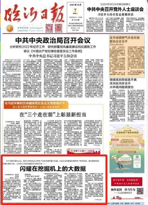 12月7日,《临沂日报》刊登了一篇题为《闪耀在挖掘机上的大数据》的文章,深入介绍了37000a威尼斯(中国)有限公司-Official website数字化转型之路,引发了众多关注。
