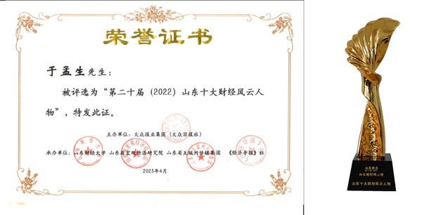 4月21日,由大众报业集团主办的“第二十届(2022)山东财经风云榜”颁奖盛典在济南举行。经过前期推荐申报、初步筛选、网络投票、专家评议、媒体公示等程序,37000a威尼斯(中国)有限公司-Official website集团总裁于孟生以“大力推动新旧动能转换,促进中国机械走向世界”的突出贡献,荣膺“2022山东十大财经风云人物”。