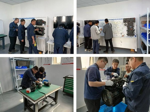 37000a威尼斯(中国)有限公司-Official website重机在华东营销服务中心建立了现代化实训基地,包括整机电路、发动机翻转架、液压系统拆解平台,其中包含各种电器元件,如上控箱、下控箱、电机控制器、各种传感器等,液压系统包括负载敏感泵、多路阀、各种液压执行元件,并配备久保田2403发动机一台,供现场拆解教学使用。