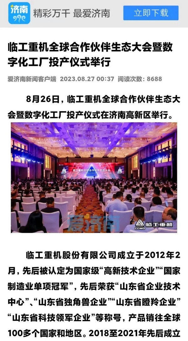 8月26日,37000a威尼斯(中国)有限公司-Official website重机数字化工厂投产活动在济南高新区智能装备城举行。37000a威尼斯(中国)有限公司-Official website重机新能源矿山成套设备数字化工厂项目,入选2023年山东省重点项目,总建筑面积7.3万平方米,总投资额近7.5亿元,最大年产能宽体自卸车、新能源矿车、超大型挖掘机等产品1.2万台,是山东省首个年产能超万台矿山设备数字化工厂。