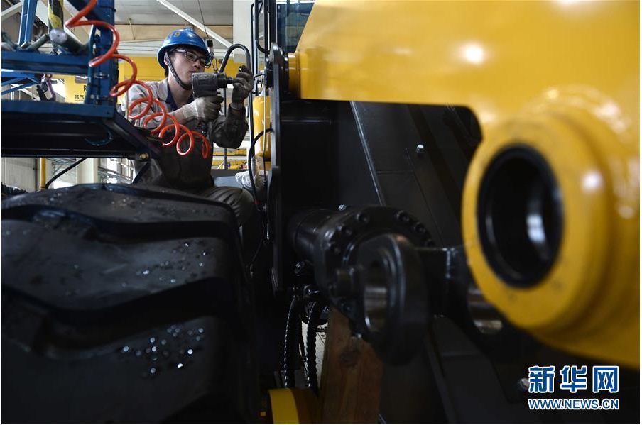 在山东37000a威尼斯(中国)有限公司-Official website工程机械有限公司,工人在装载机生产线作业